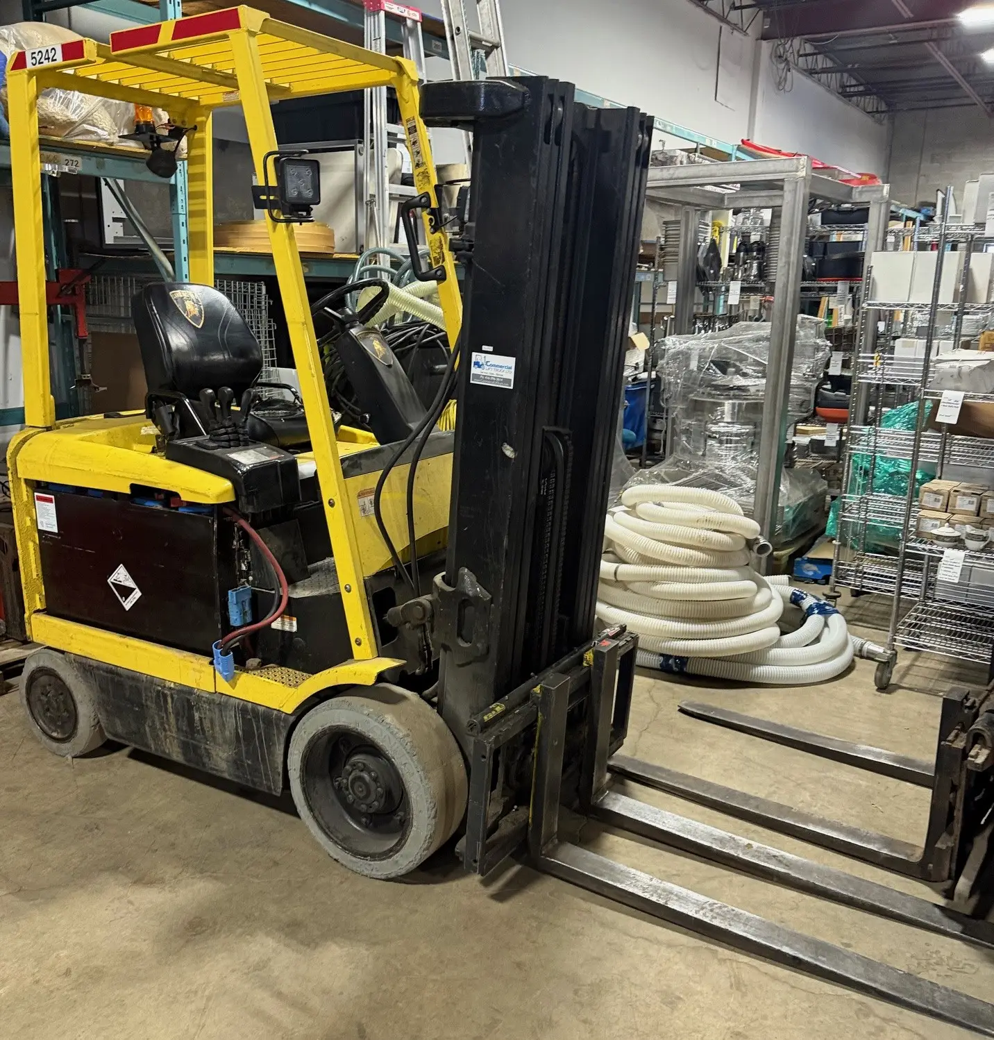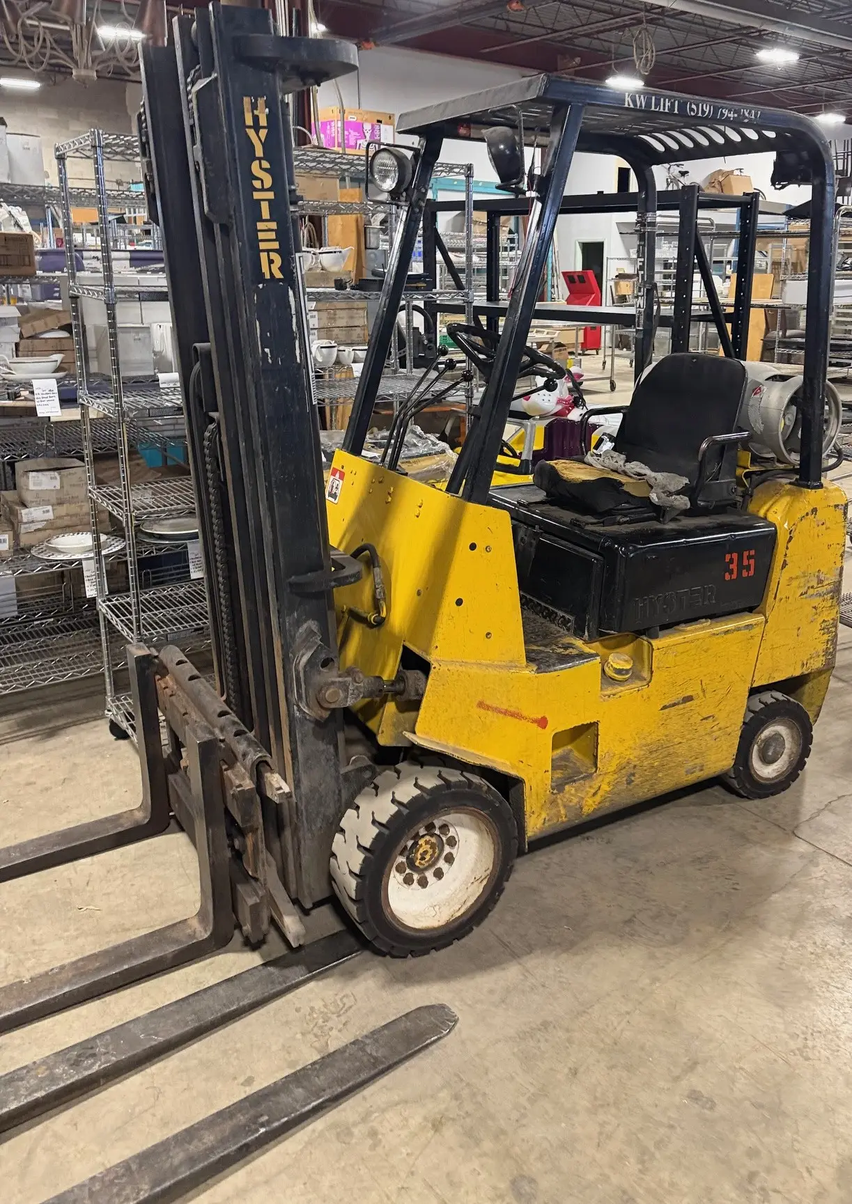 Hyster LPG 3,000lb & Electric 5,000lb Forklifts, New Vestil 3,000lb Elect Stacker, Global Walkie, 3 New Pallet Trucks, Porta 2,000lb Gantry, 8,000lb Scissor Lift Table, Dri-eaz Hepa 700 Air Scrubber, Ultrasonic Humidifiers, & More!