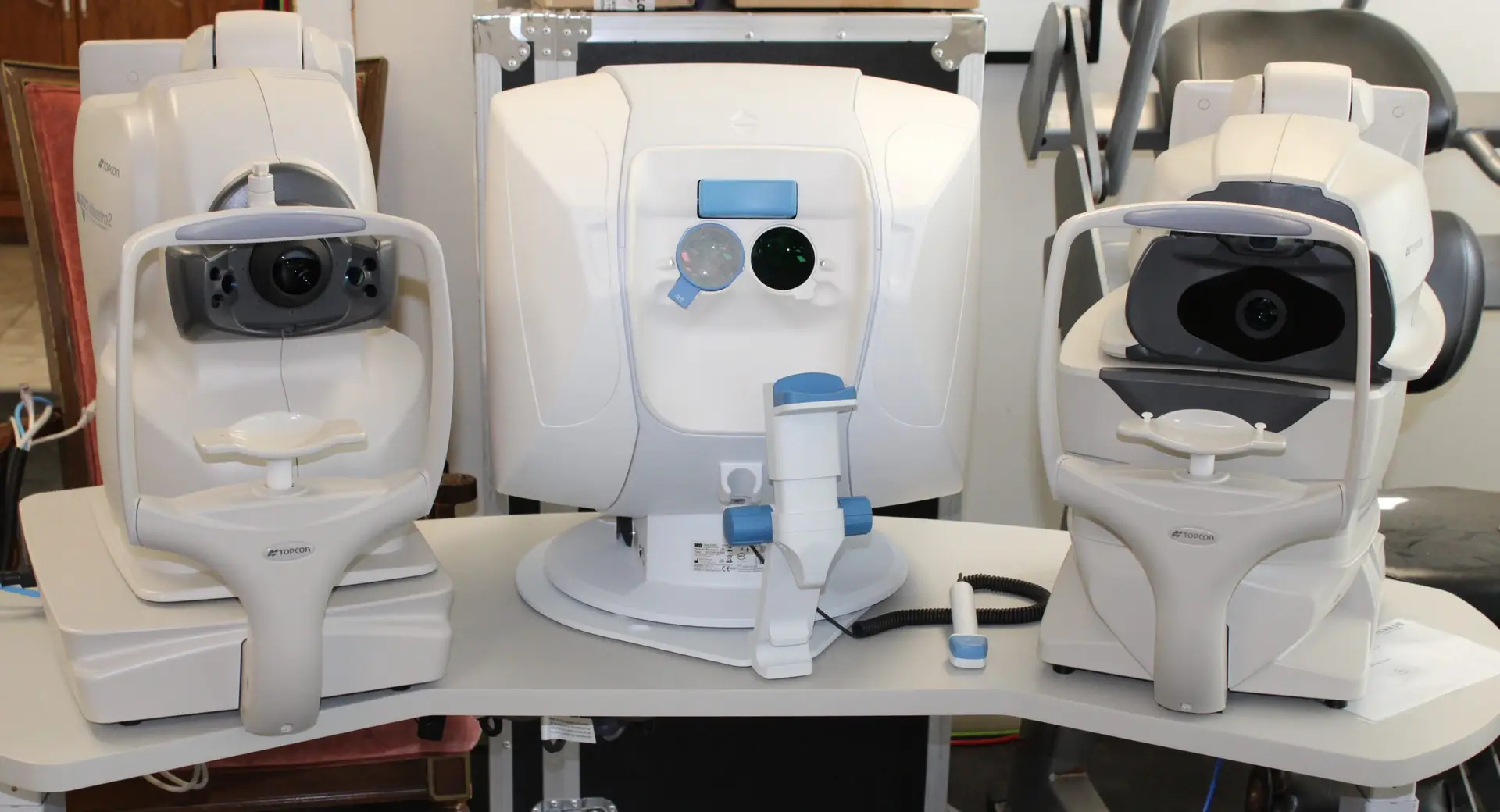 2023 Topcon 3D Oct-1 Maestro Fundus Camera, Octopus 600 Perimeter Pro, Topcon TRK-2P Auto Karotometer, Topcon CV-5000S Vision Tester, Topcon Chair w/ Slitlamp & More!